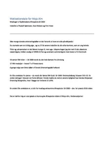 Motivationstale for Maja Alm æresplatte 2022